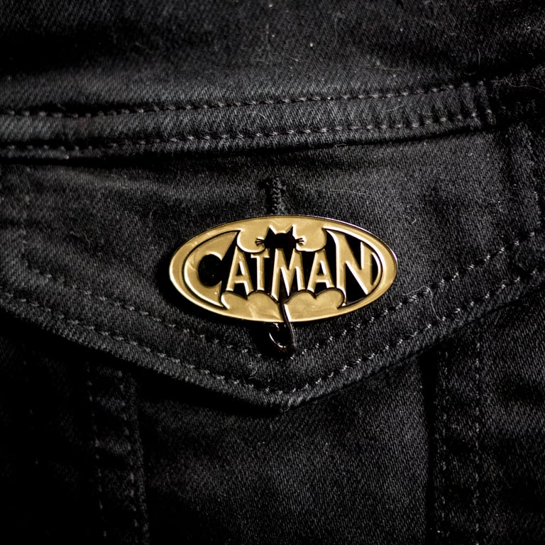 Show the world your love for all things Cat Man with these freshly minted 1.75 in. wide Cat Man logo pins, in three cat-tastic colors!