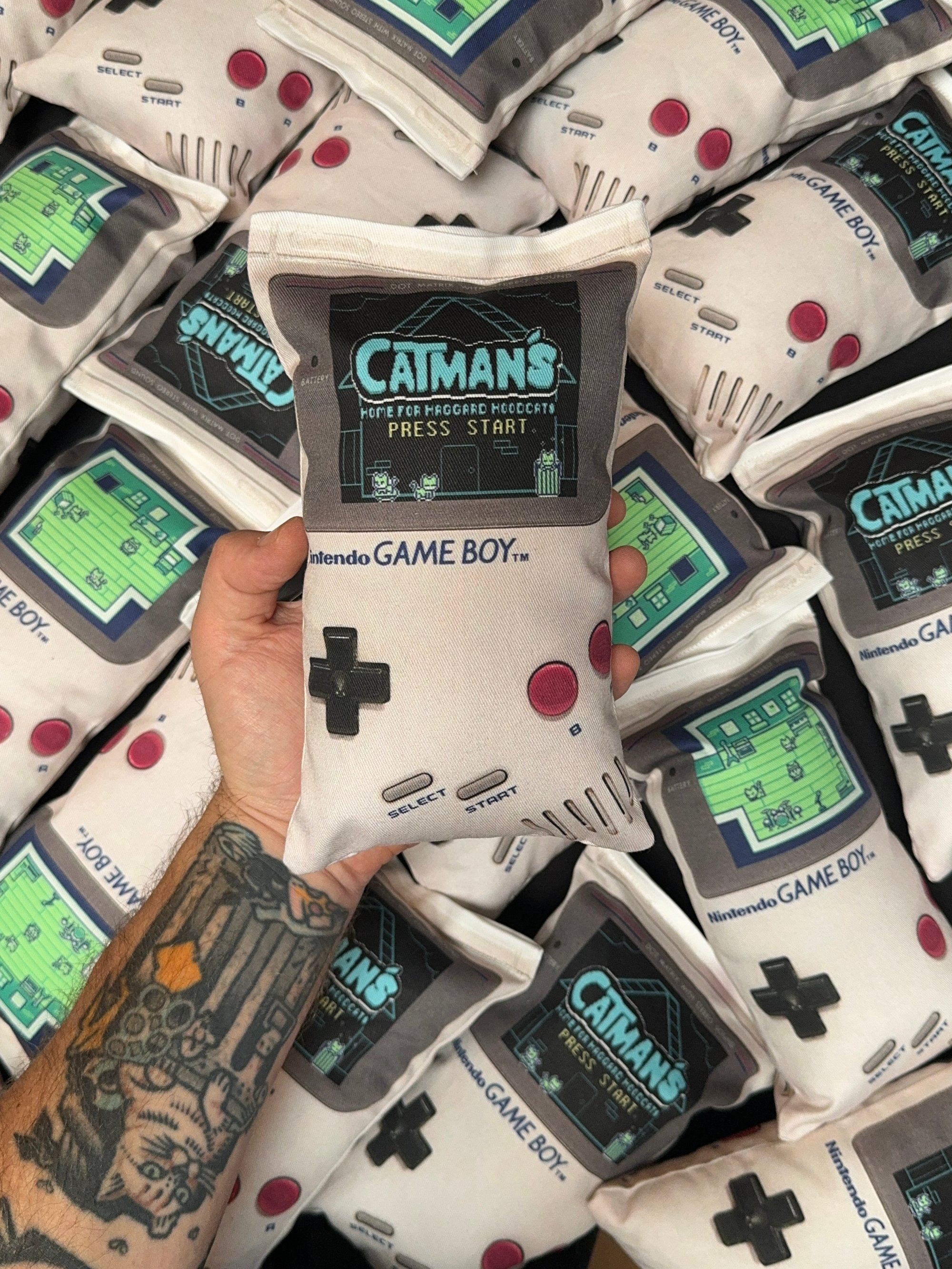 Made these ridiculous Gameboy Catnip Kickers for the December 2024 "Cat Man's Home for Haggard Hoodcats" monthly mail club, and made a few extra for the shop!