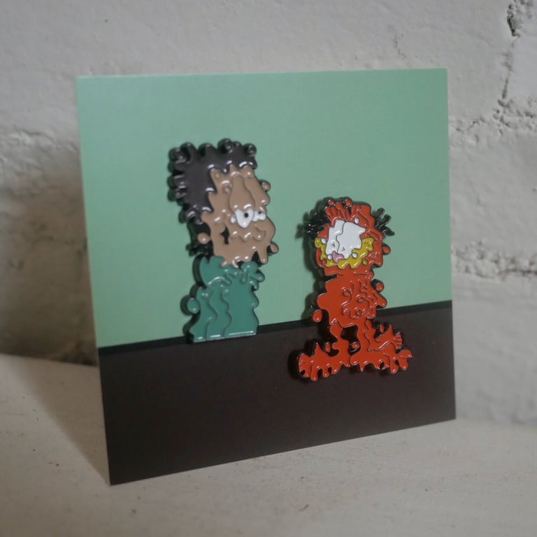 I teamed up with Wizard Skull to bring one of his latest paintings to life in a pin form! Pull squiggly Garfield & Jon right off the canvas, and stick em on your favorite backpack, jacket, or whatever the hell you put pins on!