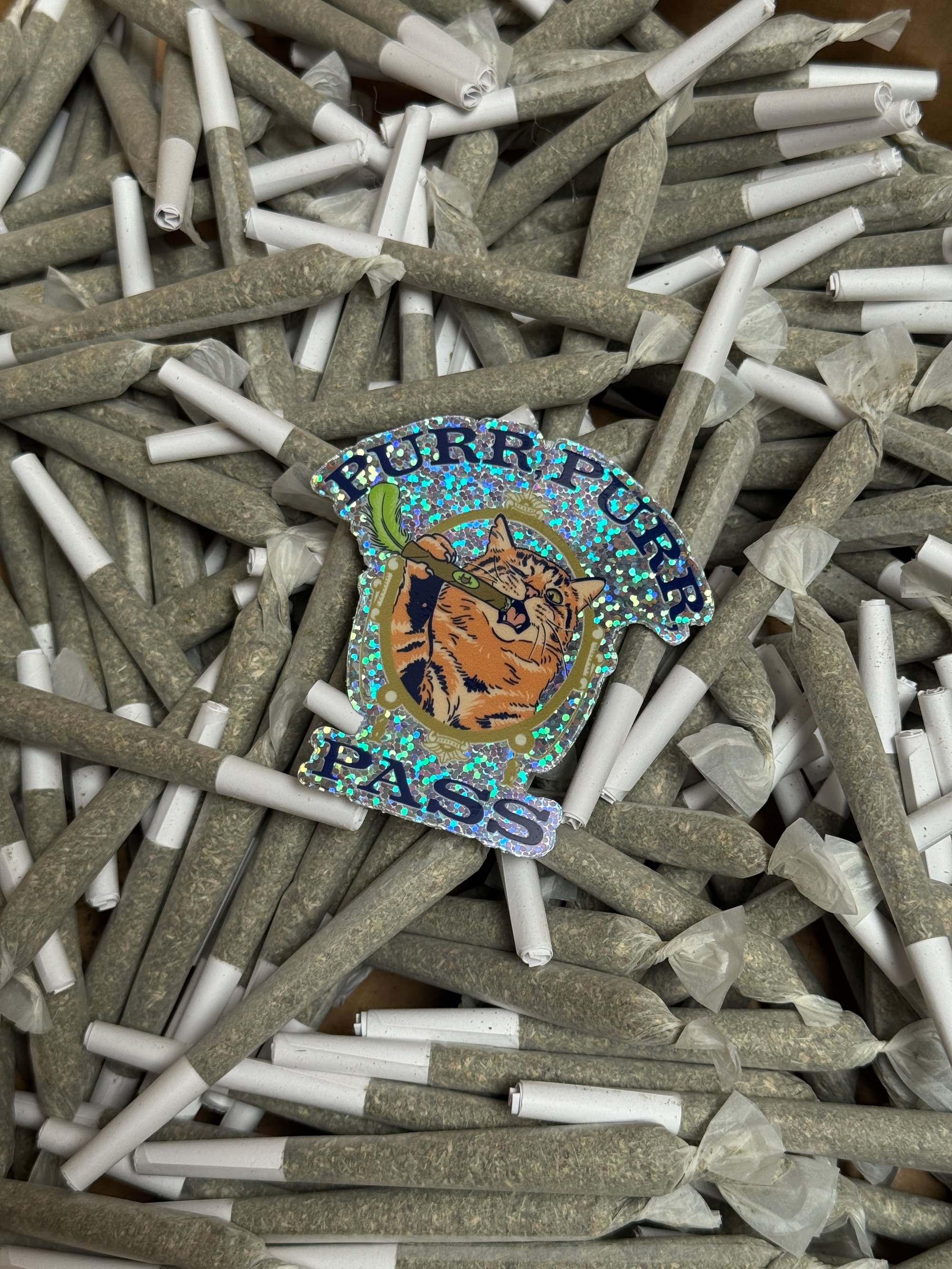 Special 4/20 Sparkle Edition Sticker pack feat. artwork from @MeganLynnKott of our favorite Haggard Hoodcat, Gnarfield! Plus 5 Catnip Joint pre-rolls, wrapped in natural unbleached paper.