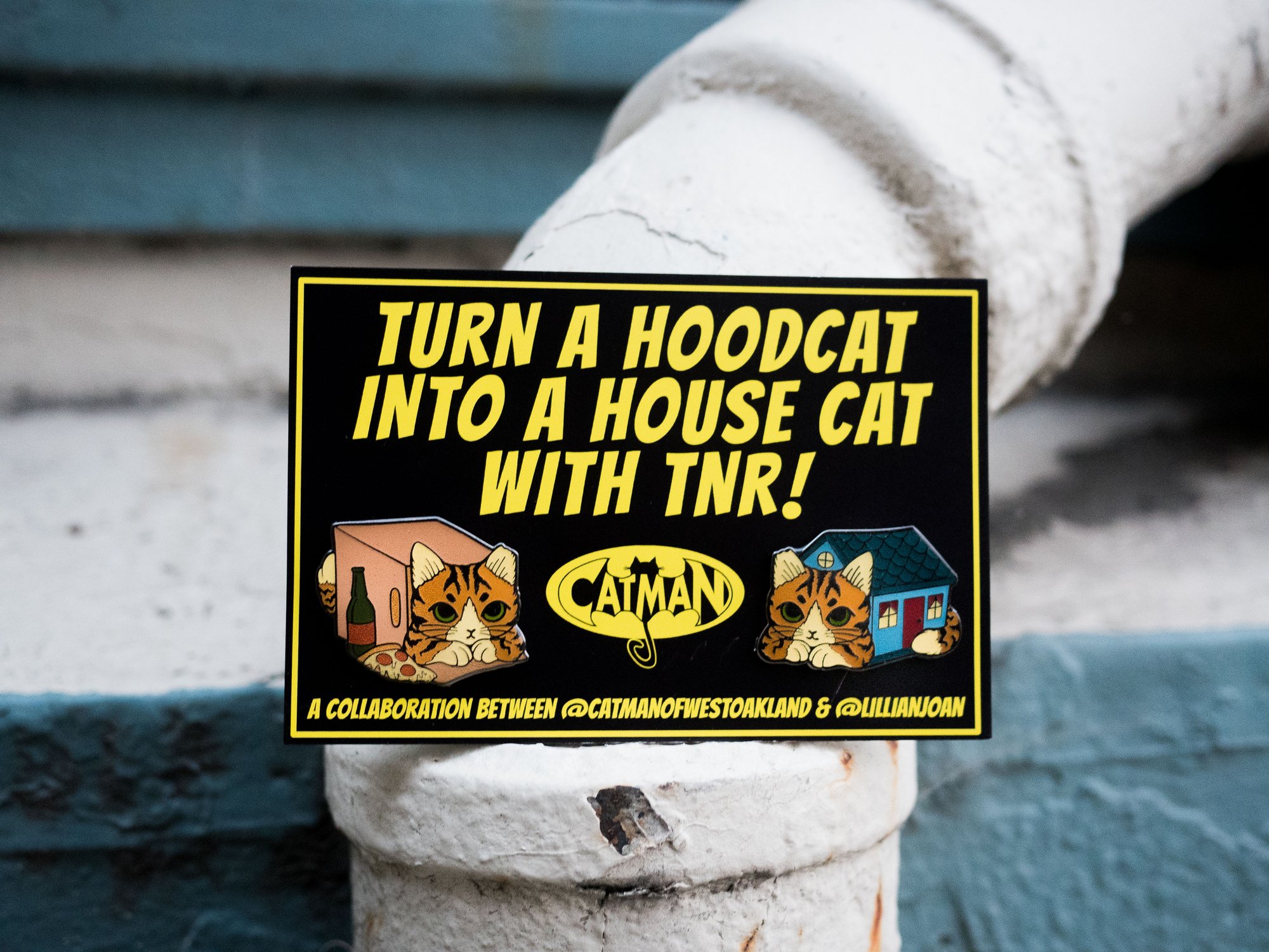 I teamed up with Lillian Joan to bring you this awesome pin set [based on Stubbs!] of how you can turn a Hoodcat into a house cat with TNR! Sometimes TNR means Trap, Neuter, Return... and sometimes it means Trap, Neuter, Rehome! Either way, if you see a cat with a flattened ear tip you'll know that they've been fixed, and can't add to the homeless cat population.